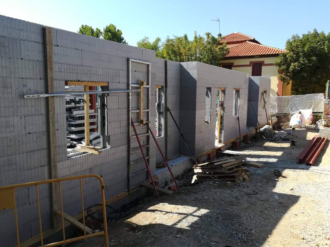 Esses blocos são ocos, resultando um espaço que é preenchido com betão.